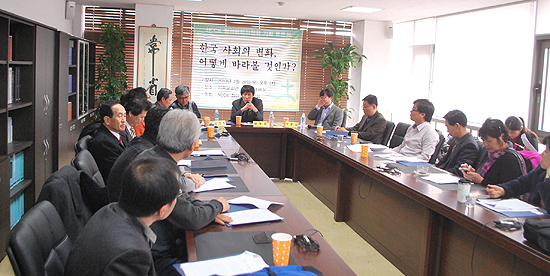 한국기독교교회협의회 정의평화위원회(위원장 허원배)가 지난 28일 오후 2시 서울 연지동 기독교회관 709호 예배실에서 ‘한국사회의 변화 어떻게 바라보 것인가?’를 주제로 기획 토론회를 가졌다. 이날 토론회에서 김동춘 교수(성공회대 사회과학부)가 발제를, 김진호 목사(제3시대그리스도교연구소 연구실장)가 논평을 맡았다.