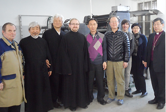 | ▲NCCK 방문단이 러시아 정교회 내 성서 인쇄소를 방문, 한국교회에서 보내준 인쇄기를 확인했다. |