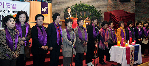 ‘제7회 세계기도일 한국대회’가 18일 오전 11시 서울 종로구 연동교회에서 열렸다. ‘소외된 이들의 좋은 이웃이게 하소서’라는 주제로 한 이 기도회는 한국기독교여성연합회 세계기도일위원회가 주최했다.