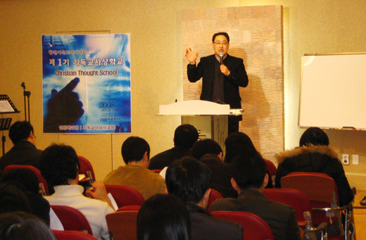 | ▲ 황민효 박사가 기독교사상학교서 불트만의 사상을 조명하는 강의를 하고 있다 ⓒ베리타스 |