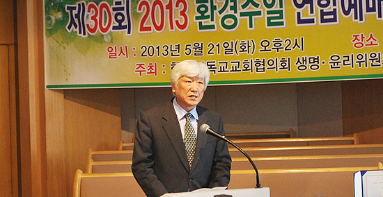 한국기독교교회협의회(이하 교회협), 기독교환경운동연대(이하 기환연)가 공동주최한 이날 연합예배에서 유근숙 목사(교회협 생명윤리위원회 위원), 박세양 장로(교회협 생명윤리위원회 위원) 등이 공동으로 2013년 환경주일선언을 낭독했다.