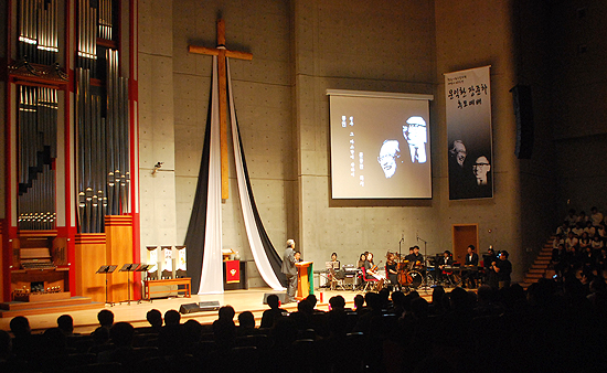 | ▲한국기독교장로회 총회가 21일 오후 7시 한신대 신학대학원 채플에서 새역사 60주년을 맞이해 ‘문익환, 장준하 추모예배’를 가졌다. ⓒ기장 총회 제공 |