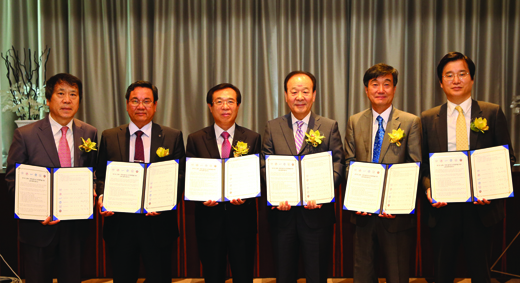 | 한신대가 대진대, 수원여대, 중앙대, 한세대, 협성대와 함께 지난 4일 수원 라마다 호텔에서 교육문화발전과 상호협력을 위한 협약을 체결했다. ⓒ한신대 제공 |