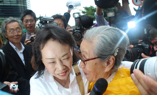 | ▲일본기독교단측에서 위안부 할머니를 위로 방문했다. 일본기독교단측은 한 위안부 할머니에게 준비해 둔 성금 100만엔을 전달하고, 포옹을 나누는 시간을 가졌다. ⓒ베리타스 |
