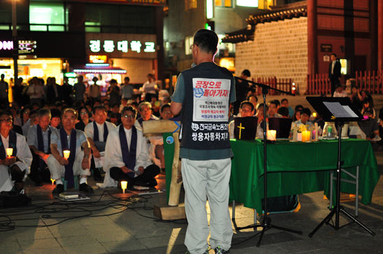 | ▲참석자들이 쌍용차 해고 노동자들을 위해 기도하고 있다. |