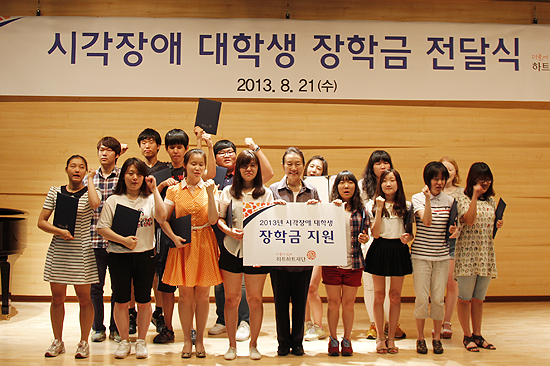 지난 21일(수) 오후3시, 서울 송파구의 하트하트재단(이사장 신인숙) 리사이틀홀에서 시각장애 대학생을 지원하는 장학금 전달식이 있었다.