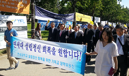 ‘연세대학교 설립정신 회복을 위한 기독교대책위원회’(위원장 손달익 목사, 이하 연세대 대책위)가 3일 오후 서울 신촌에 소재한 창천교회와 연세대 캠퍼스 교정 등에서 특별기도회 및 기도행진을 벌였다.