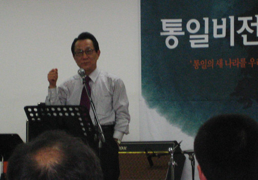 6일 서울 불광동 소재 팀 수양관에서 통일비전캠프가 열렸다. 저녁집회 특별강사로 초청된 경동교회 박종화 목사가 통일의 비전에 대해 강연하고 있다.