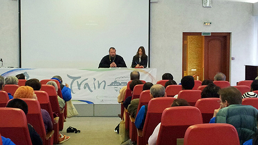 | ▲지난 17일(현지시각) 평화열차가 이르쿠츠크에 도착, 참가자들이 콘퍼런스에 참여하고 있다. ⓒNCCK 제공 |