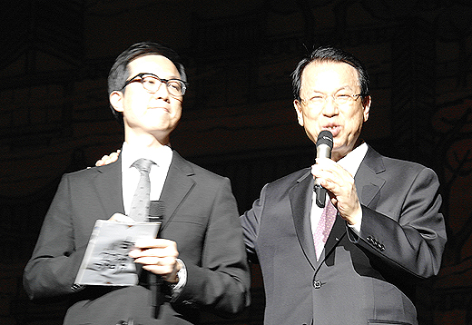 | ▲2일 늦은 오후 명성교회에서 열린 ‘한국문화의 밤’ 행사에서 김삼환 목사(WCC 한국준비위원회 상임위원장, 우)가 아들 김하나 목사(좌)를 세계 교회 관계자들 앞에 소개하는 시간을 갖고 있다. ⓒ공동취재단 |