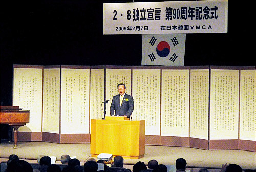 7일 오전 재일본 한국 YMCA(이사장 김용성) 주관으로 일본 동경 소재 한국 YMCA에서 ‘2.8독립선언 제90주년 기념식’이 열렸다. 이날 기념식에는 정부 대표로 참석한 김양 국가보훈처장을 비롯해 김영일 광복회장, 권철현 주일대사, 허맹도 재일본 대한민국 민단 중앙본부 부단장 등이 참석했다.