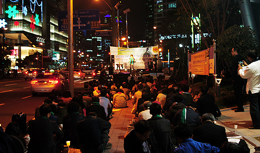 | ▲4일 저녁 부산 벡스코 앞 작은 광장서 비정규직 노동자들이 WCC 부산총회를 환영하며 비정규직 노동자들에 대해 관심을 가져줄 것을 당부했다. ⓒ베리타스 |
