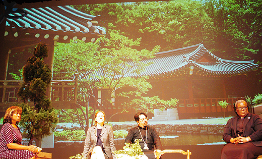 6일 오전 부산 벡스코 오디토리움에서 ‘정의’를 주제로 한 전체회의가 열렸다. 사회자 및 토크쇼 주최자 안젤리크 워커 스미스(Rev. Dr. Angelique Walker-Smith) 목사의 인도로 진행된 이 회의는 환영과 소개 그리고 마당 토크쇼와 청중들로부터의 이야기 등의 순서로 진행됐다.