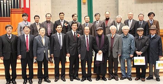 | ▲제5대 한신대 신학대학원장 이·취임식 후 주요 관계자들이 기념촬영을 하고 있다. ⓒ베리타스 |