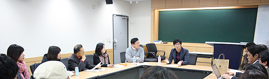 | ▲연세대 신과대학과 신학실천 훈련기관으로 파트너쉽을 맺고 있는 본지 김진한 편집장(가운데)이 연세대 신과대측 학생들과 좌담회를 갖고 있다. ⓒ베리타스 |