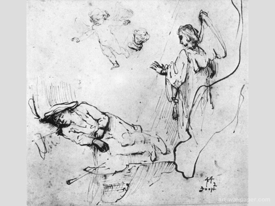 | ▲렘브란트, <야곱의 꿈>, 드로잉, 17.8x19.6cm, 1644. |