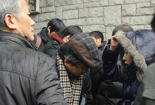 | ▲‘박근혜 대통령 사퇴 촉구’ 기자회견을 마친 기독교 공대위 소속 목회자들이 취재진에 둘러싸여 향후 활동 계획 등에 대해 설명하고 있다. ⓒ베리타스 |