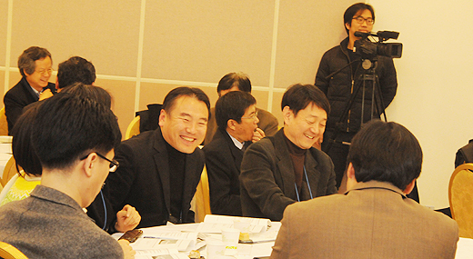 | ▲‘한류의 현지화와 종교 국제 세미나’ 참석자들이 토론 중 활짝 웃고 있다. ⓒ베리타스 |