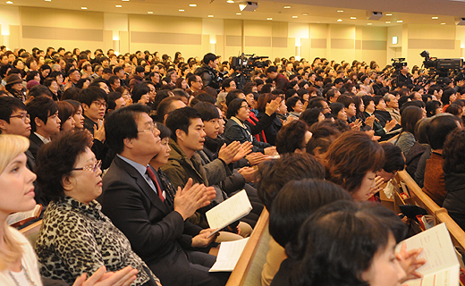 | ▲새 예배당 입당감사예배에 참석한 사랑의교회 교인들. ⓒ사진=김진한 기자 |