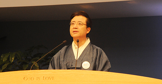 | ▲1부 예배 후 2부 순서에 앞서 인사말을 전하는 사랑의교회 오정현 담임목사. ⓒ사진=김진한 기자 |