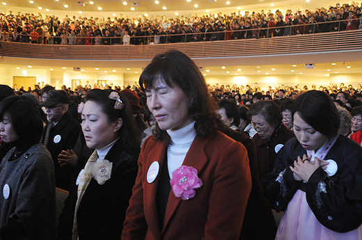 | ▲기도하는 사랑의교회 교인들. ⓒ사진=김진한 기자 |