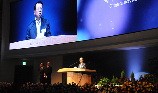 | ▲2부 축사 순서에서 명성교회 김삼환 담임목사가 축사하고 있다. ⓒ사진=김진한 기자 |