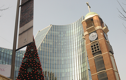 | ▲교회 밖에서 본 사랑의교회 새 예배당. 돔 형식의 십자가 탑이 눈길을 끈다. ⓒ사진=김진한 기자 |