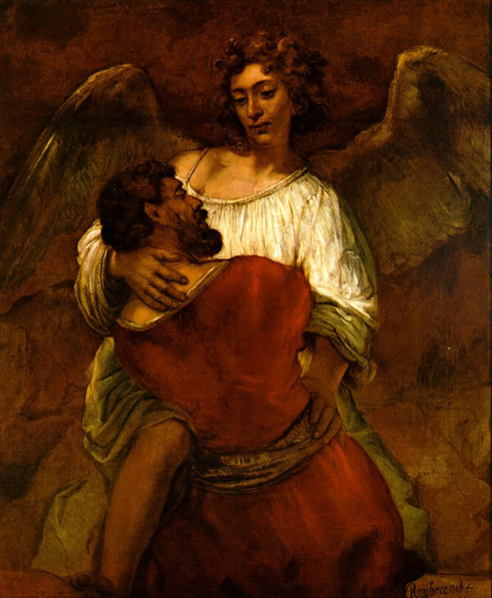 천사[적(敵)]의 가치는 그의 위대함과 존엄 속에서 빛나지 않는다. 그가 야곱을 이길 수 없다는 사실을 알아차렸을 때 그는 야곱의 몸에 상처를 낸다. 그렇지만 야곱은 몸의 고통에도 불구하고 여전히 그(적) 위에 있다. 마침내 그자가 자신을 놓아줄 것을 요구한다. “날이 새려 하니 나로 가게 하라”. 다시 야곱은 그에게 청한다. “당신이 내게 축복하지 아니하면 가게 하지 아니하겠나이다.”