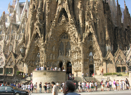 | ▲사그라다 파밀리아에 입장하기 위해 줄을 서 있는 사람들, 보이는 이쪽은 동쪽문[가우디 사이드]인데 매표소는 반대쪽 서쪽문에 있다. |