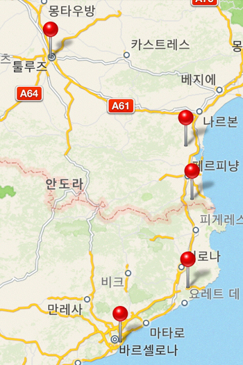 | ▲바르셀로나에서 툴루즈까지 여정 |