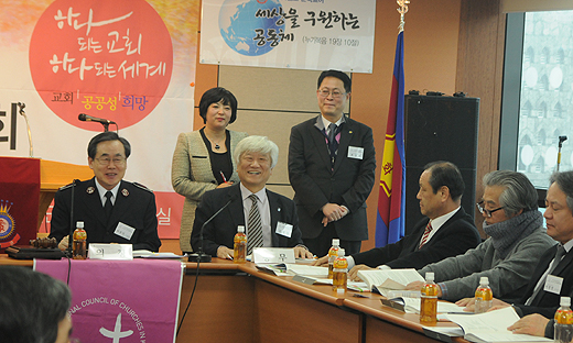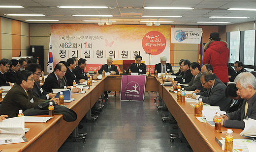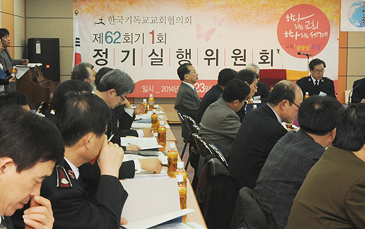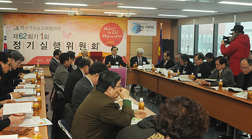 한국기독교교회협의회(이하 NCCK, 총무 김영주 목사) 제62회기 제1회 정기실행위원회가 23일 오후 2시 서울 충정로 구세군빌딩 5층 예배실에서 열렸다. 이날 회의에서는 지난 정기총회 회의록 채택을 비롯해 새 국장 임명 및 박물관 그리고 WCC 부산총회 후속 사업 등에 관해 실행위원들 간 논의하는 시간을 가졌다.