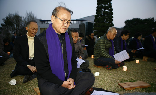 | ▲'WCC와 함께하는 평화통일 월요기도회’에서 참석자들이 기도하고 있다. ⓒ사진=지유석 기자 |
