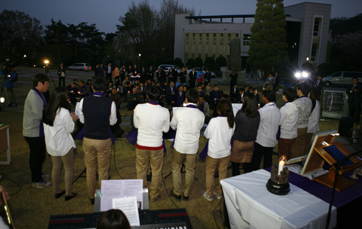 방한한 울라프 트베이트 세계교회협의회(WCC) 총무가 설교자로 나선 기장의 ‘평화통일 월요기도회’가 7일 오후 7시 서울 수유리 한신대 신학대학원 앞에서 열렸다.