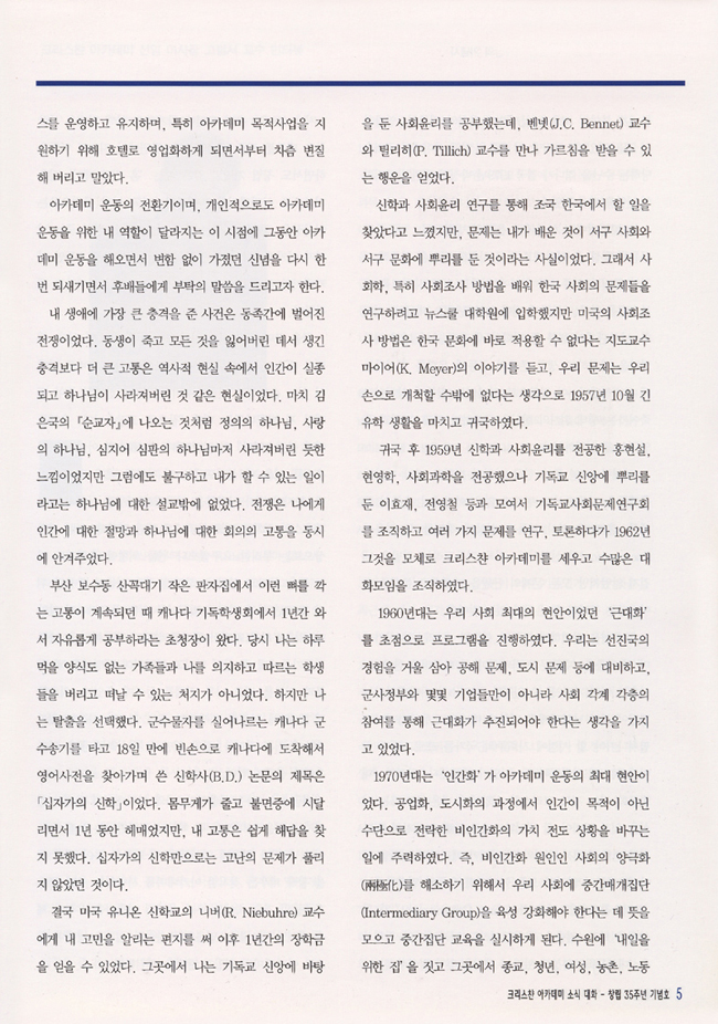 크리스챤아카데미 설립 강원용 이사장 기념사