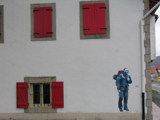 | ▲부르게테 마을 집 벽에 그려져 있는 순례자, 혹시 헤밍웨이일까? |