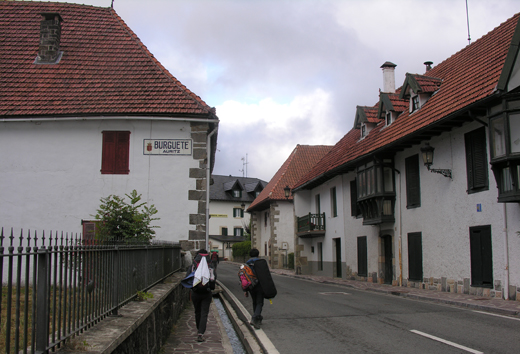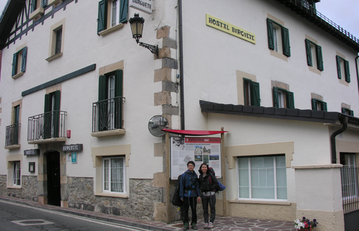 까미노는 135번 주도로를 타고 부르게테 마을의 중심을 지나간다. 좌우 배수로 물길이 어깨띠처럼 흘러가는 도로의 양 옆에, 1800년대에 지어진 건물들이 늘어서있다. 빨간색이나 짙은 초록색의 목재 덧창, 조그마한 화분을 올려놓을 수 있을 만큼의 좁은 철제 발코니가 있는 창가, 벽난로에서 올라오는 연기를 내보낼 굴뚝이 솟은 삼층이나 사층 건물들이다. 그 건물들 중에 기억할 만한 집이 있는데, 부르게테 호스텔Hostal Burguete(Calle de San Nicolás, 71, Auritz)이다.
