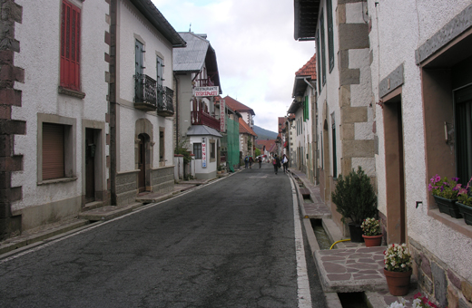 | ▲부르게테Burguete 마을 중심 도로를 지나가는 순례자 |