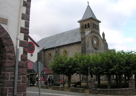 하얀 벽, 초록색 덧창이 눈에 띄는 부르게테Burguete 호스텔을 지나 좀 더 올라가면, 도로 왼쪽에 아치형태의 회랑이 있는 부르게테 관공서 건물이 나타난다. 회랑을 마주한 플라타너스 공원은 시원한 그늘을 만들고, 공원 뒤편 나지막이 자리한 프론톤 바르Fronton Bar는 순례자들의 달콤한 휴식처이다. 몇몇 순례자들은 이른 아침, 빈속의 허전함을 빵 한 조각, 커피 한 잔으로 채우고 있다. 프론톤 바르 옆에는 영혼의 쉼터인 성 니콜라스 교회당Iglesia de San Nicolás de Barii이 중세의 시간과 공간을 그대로 간직하며, 거룩한 소원 품은 순례자들의 무사한 여행을 위해 간절히 기도하고 있다. 교회당 정면 꽃문양의 원형 벽감 가운데에 있는 둥근 시계는 우주의 중심처럼 보인다.