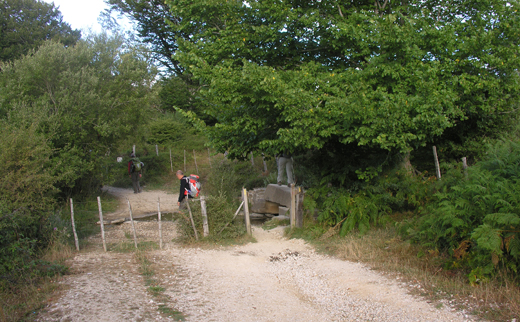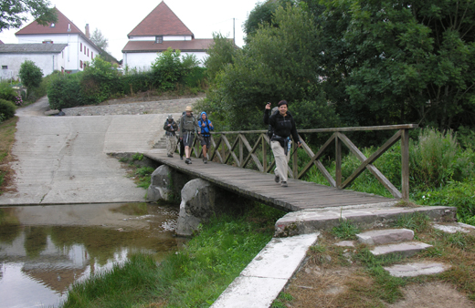 | ▲부르게테를 빠져 나가며 개울Rio Urrobi를 건너며 즐거워하는 순례자들 |