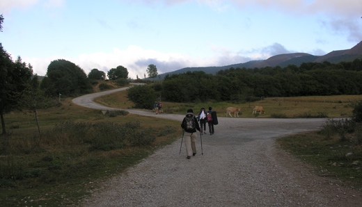 거센 물줄기가 들이닥쳐도 꿈적하지 않을 큰 바위 덩어리가 받치고 있는 빛바랜 갈색 나무다리를 건너면, 한가로이 풀을 뜯고 있는 누런 소 떼가 여유로운 발걸음으로 순례자들을 맞이한다. 검은 비구름이 간간이 일어나지만, 햇살이 비집고 들어오는 기세를 꺾지는 못한다. 강렬하게 내리 비치는 햇살은 이 땅이 열정의 스페인 영토임을 잊지 않게 하며, 명과 암의 선명한 대비를 만들어준다.