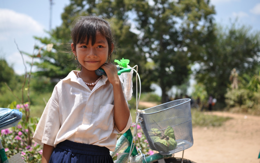 | ▲자전거를 선물 받은 캄보디아 소녀. ⓒ한국구세군 제공 |