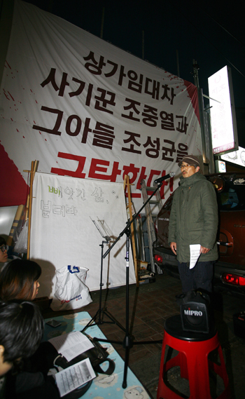 15일 강제철거 논란이 일고 있는 서대문구 연희동 소재 카페 ‘분더바’ 농성장에 기독 청년들이 참여해 투쟁을 벌이고 있는 임대차 관계자들을 격려하는 시간을 가졌다.