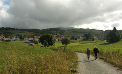 메스키리스 봉우리 오를 때부터 아내와 나의 걷는 속도가 급격하게 줄어들었다. 세빈이는 특별히 문제를 보이지 않는다. 우리의 걸음 속도를 맞추려는 세빈이가 오히려 더욱 힘들 것 같아서, ‘순례자들의 뒤를 쫓아가라. 노란 화살표만 따라가라. 다음 마을에 먼저 가서 기다리라’고 하였다. 생장피드포르에서 피레네 고개를 넘어 론세스바예스로 내려갈 때처럼, 메스키리스에서 비스카레트로 내려가는 걸음이 더욱 문제였다. 오르막은 어떻게 올라갔는데 내리막에서의 무릎 통증은 너무나 고통스러운 것이었고, 아내는 다리의 균형을 맞추지 못할 정도였다. 먼저 간 세빈이가 한 시간 정도 기다린, 정오가 다 되어 비스카레트Biskarret에 도착하였다.