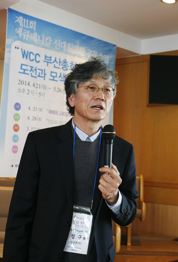 제11회 에큐메니칼 신대원연합 공동수업(이하 공동수업)이 21일(월) 오후 서울 종로구 연지동 연동교회에서 열렸다. 이날 진행된 제1강 '예배와 교회의 일치'의 강연은 이정구 성공회대 총장이 맡아 진행됐다.