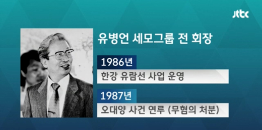 | ▲JTBC가 유벙언 세모그룹 전 회장이 오대양 사건에 연루되어 무혐의 처분 받은 경력이 있다는 것을 보도했다. ⓒJTBC 방송화면 캡쳐 |