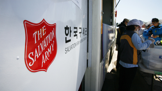 | ▲구세군 대한본영은 사건 발생 당일인 지난 4월16일(수)부터 팽목항 현지에서 생필품 제공, 무료 급식 등의 긴급 구호활동을 펼쳐왔다. ⓒ사진=지유석 기자 |