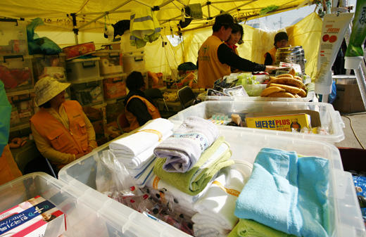 자원봉사자들이 힘들어하는 이유는 실종자 가족들과 동일하다. 실종자들의 생환소식이 들려오지 않기 때문이다. 한 봉사자는 “현장상황이 열악해도 실종자가 구조됐다는 소식이 들려오면 힘을 낼 수 있을 것이다. 그러나 이런 소식이 들려오지 않아 봉사자들 모두 힘들어 한다”고 했다. 이런 탓인지 사고 현장 분위기는 침울하기 이를 데 없다.