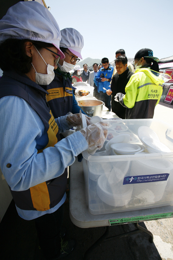 구세군 대한본영의 자원봉사자들이 팽목항 현지에 마련한 자원봉사 캠프에서 하루 100명 분 이상의 식사를 제공하고 있다. 구세군 대한본영은 사건 발생 당일인 지난 4월16일(수)부터 팽목항 현지에서 생필품 제공, 무료 급식 등의 긴급 구호활동을 펼쳐왔다.