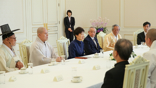 | ▲박근혜 대통령이 2일 오전 청와대에서 종교 지도자들과 접견, 종교 지도자들에게 세월호 참사라는 국가적 재난을 헤쳐나갈 지혜를 구했다. ⓒ청와대 제공 |