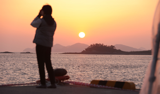 | ▲팽목항에서 바라보는 저녁놀은 더없이 아름답다. 한 실종자 가족이 진도 앞바다를 응시하며 쏟아지는 눈물을 훔치고는 아이의 귀환을 위해 기도하고 있다. ⓒ사진=지유석 기자 |